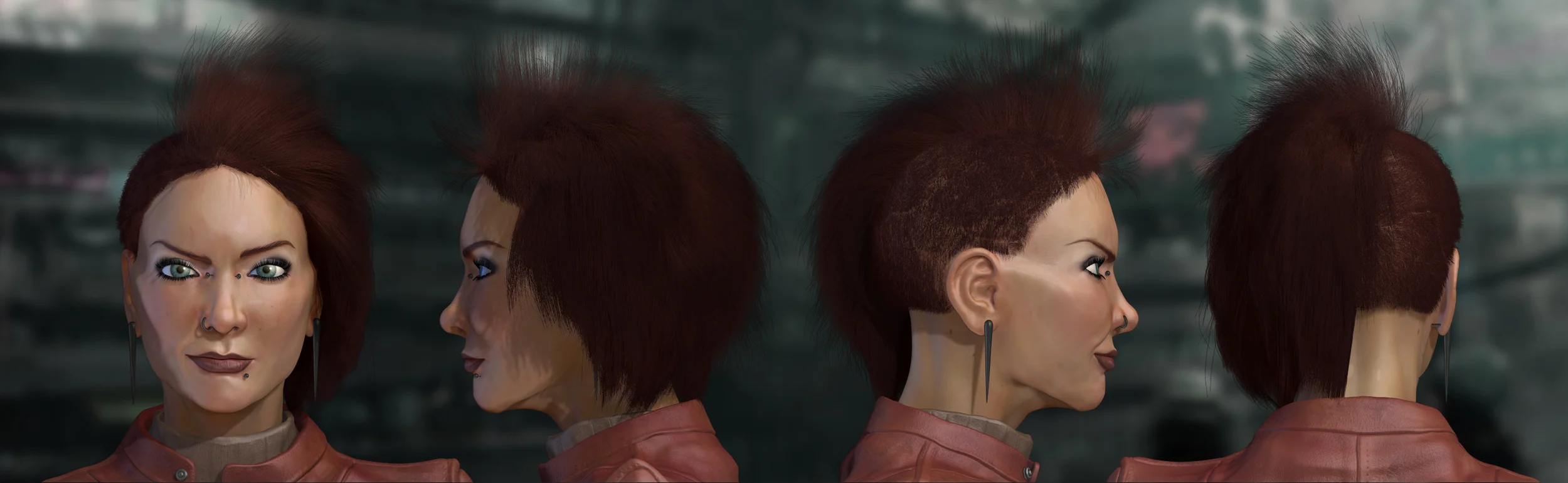 The character's concept was developed by myself, a thuggish punk with both modernist and vintage influences. The entire body was produced solely in ZBrush then retopologized in TopoGun. The body's textures are photo-based, they were edited in Photoshop and by polypainting in ZBrush. The clothing and accessories were a combination of ZBrush and Maya. Since retopology was not a requirement for the clothing and accessories, they were only textured by photo-based polypainting. Several render passes were produced for all the below images and then composited together using Photoshop.